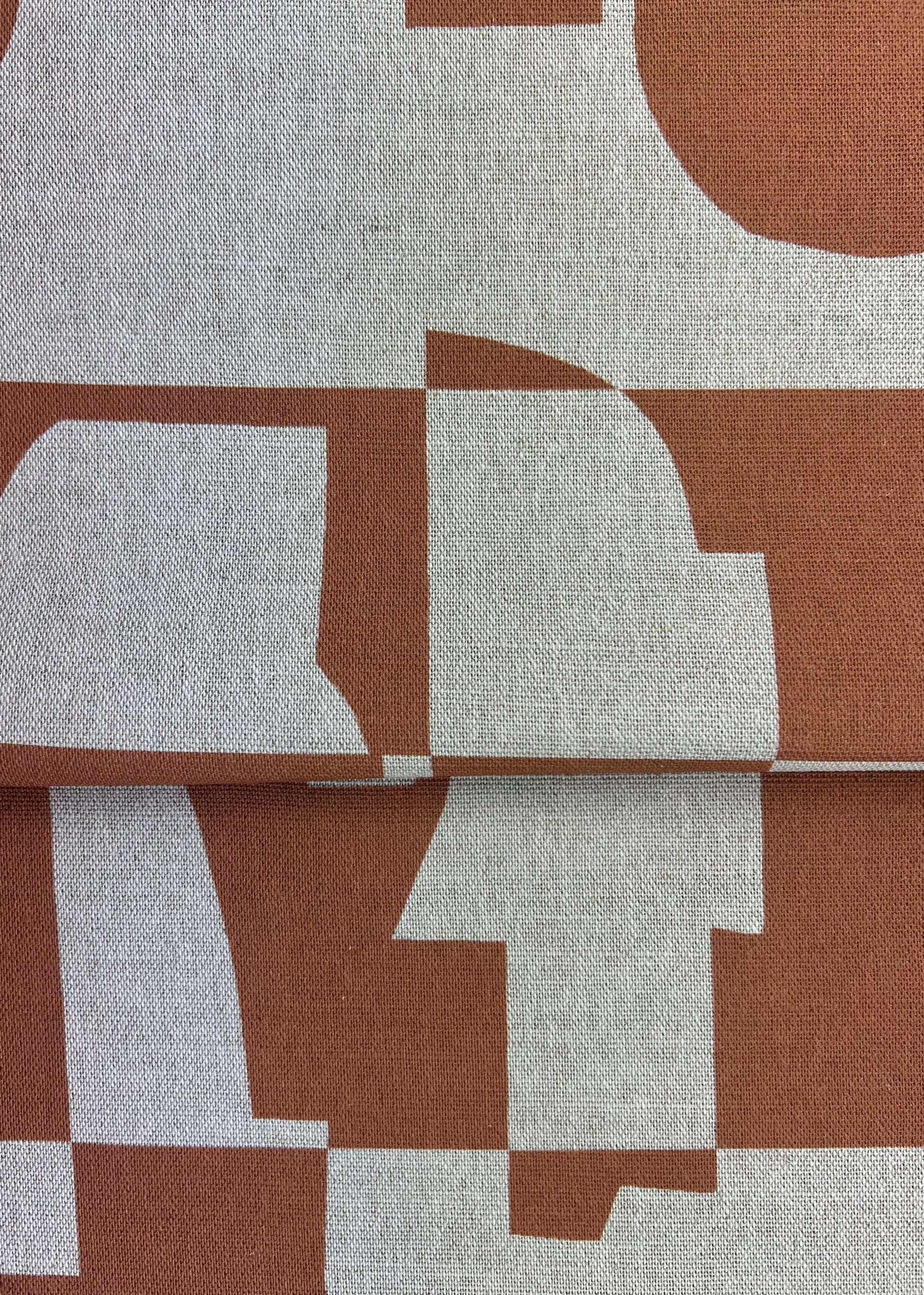 Arlo is an eye-catching, two-tone design featuring striking colour combinations and geometric shapes that create a modern, stylish look. Whether used for upholstery or as a statement piece, Arlo’s simple and contemporary composition will add energy and character to any space. This Terracotta colourway is available on a beautiful oatmeal linen as well as a luxurious white cotton velvet.