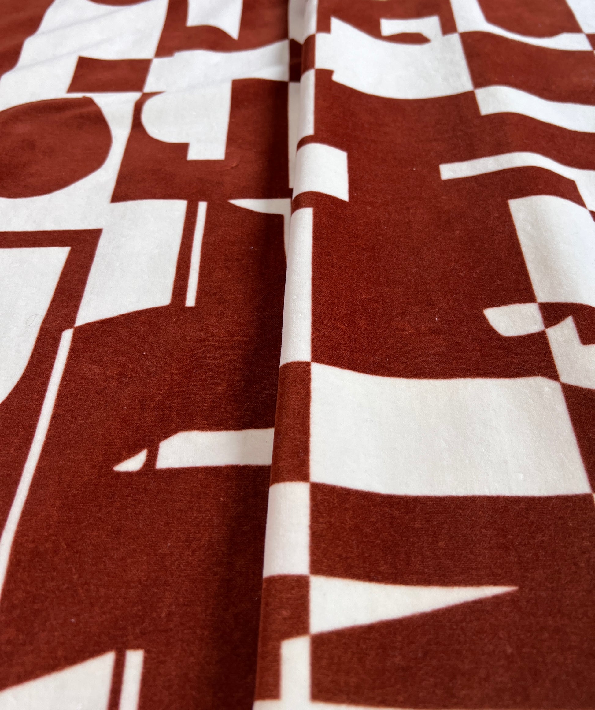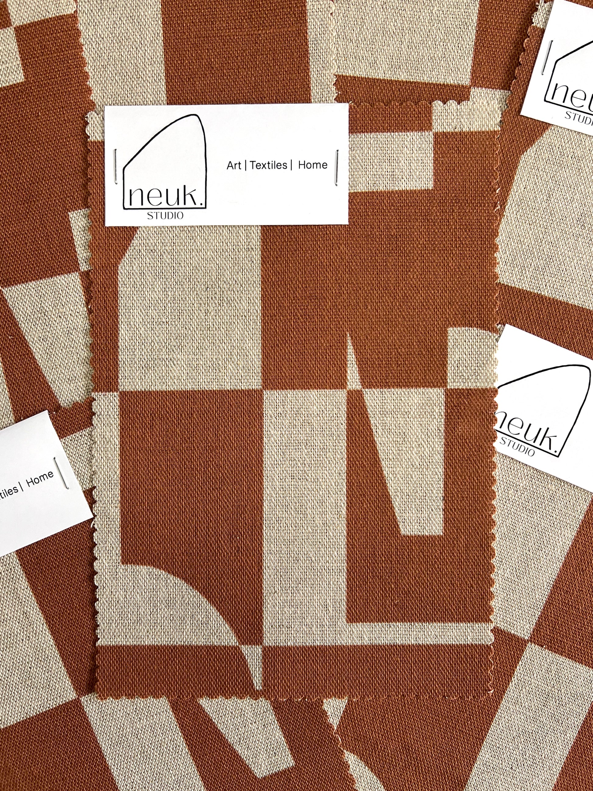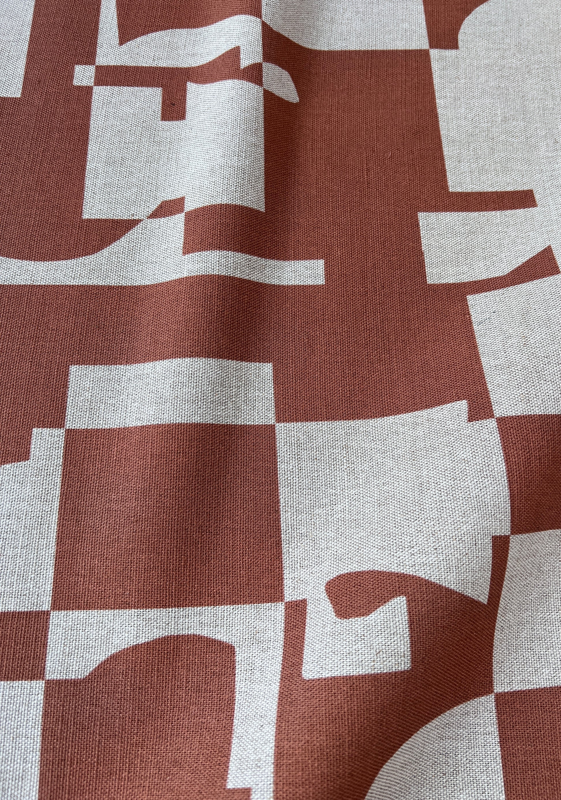 Arlo is an eye-catching, two-tone design featuring striking colour combinations and geometric shapes that create a modern, stylish look. Whether used for upholstery or as a statement piece, Arlo’s simple and contemporary composition will add energy and character to any space. This Terracotta colourway is available on a beautiful oatmeal linen as well as a luxurious white cotton velvet.