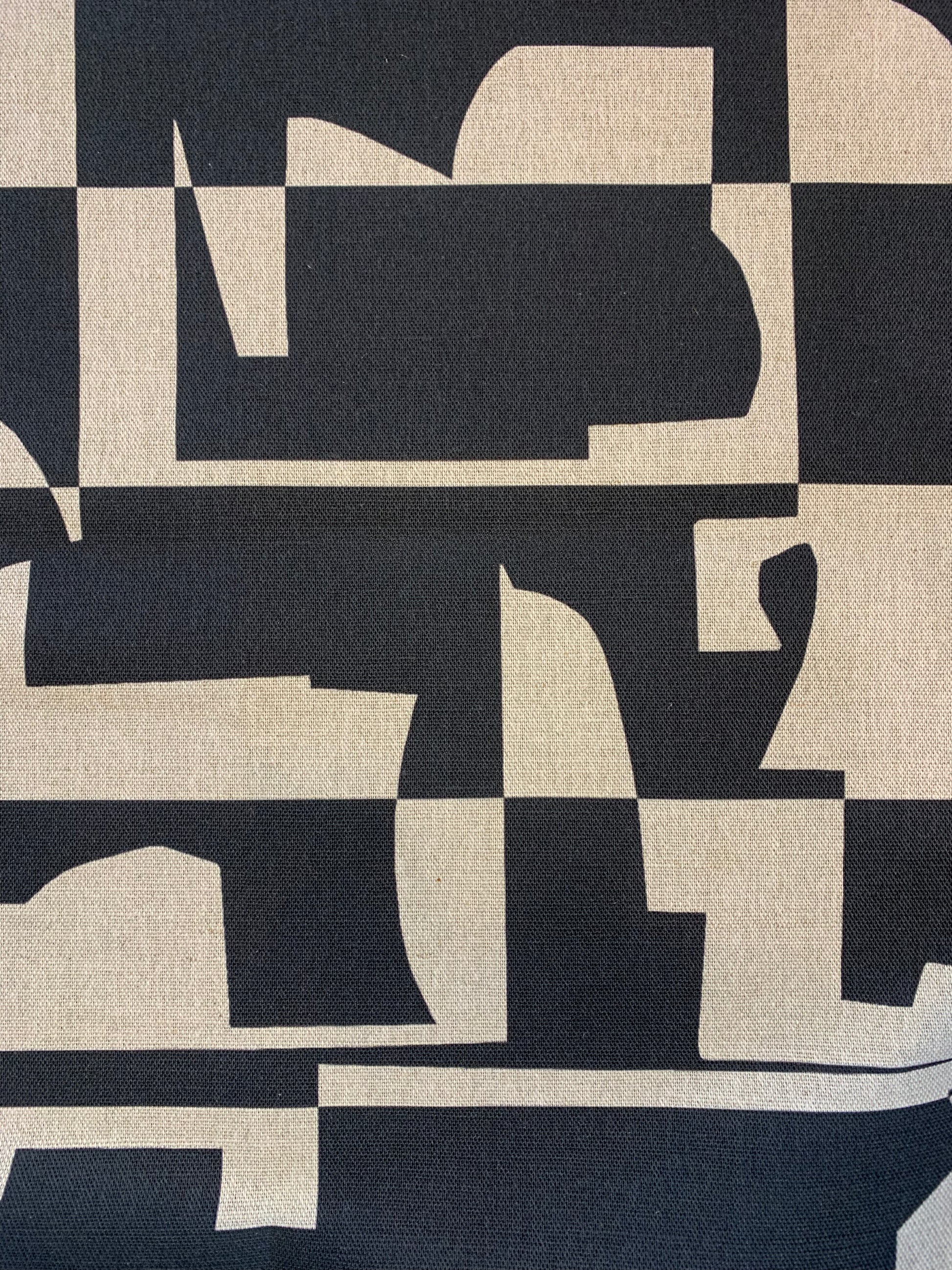 Arlo is an eye-catching, two-tone design featuring striking colour combinations and geometric shapes that create a modern, stylish look. Whether used for upholstery or as a statement piece, Arlo’s simple and contemporary composition will add energy and character to any space. This Black Charcoal colourway is printed on a beautiful oatmeal linen as well as a luxurious white cotton velvet.