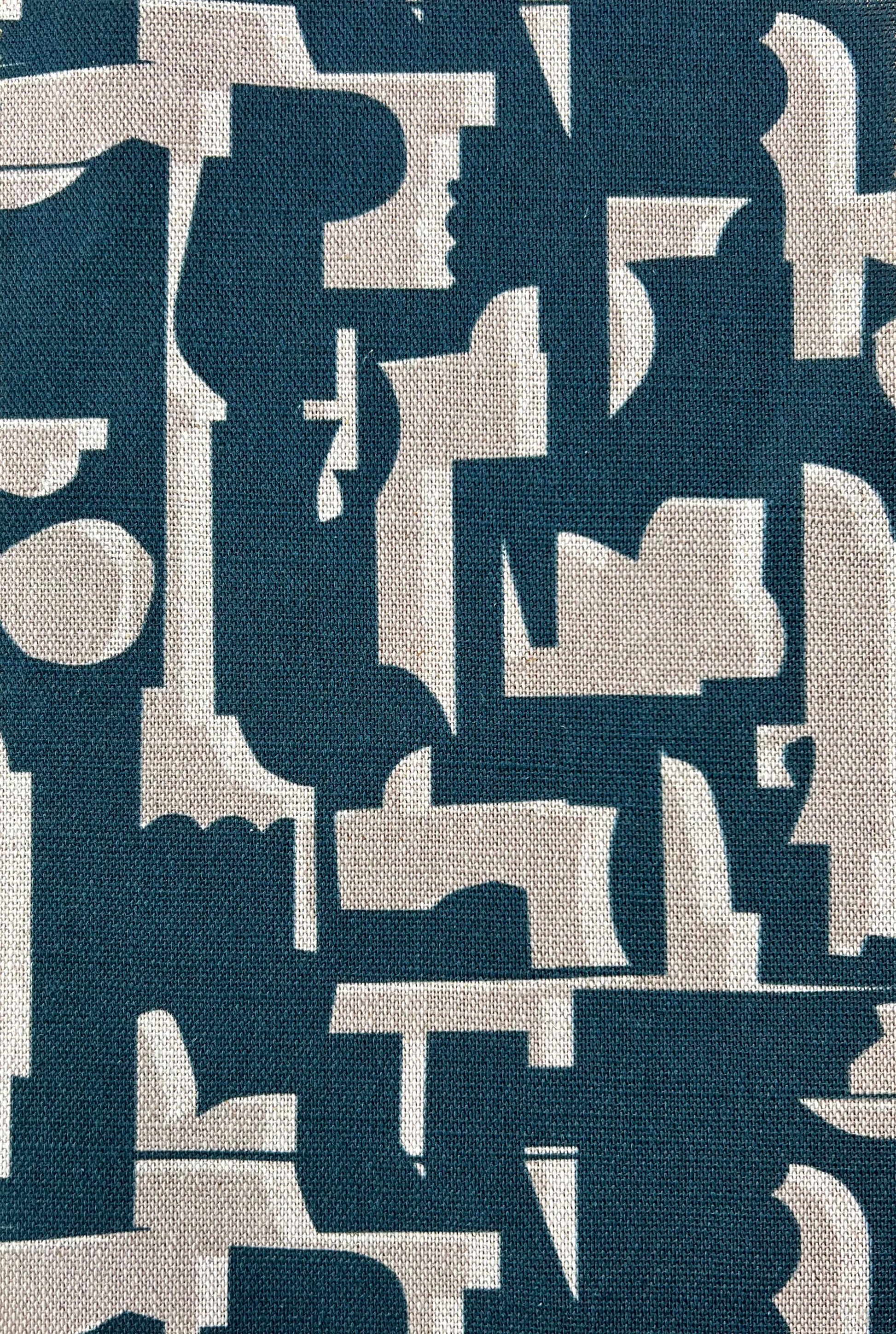 Our Isla fabric features layered, offset geometric shapes that create depth and dimension. Its small-scale pattern showcases understated geometrics, adding a modern touch and subtle texture. This Petrol Blue & Putty colourway is printed on a beautiful oatmeal linen.