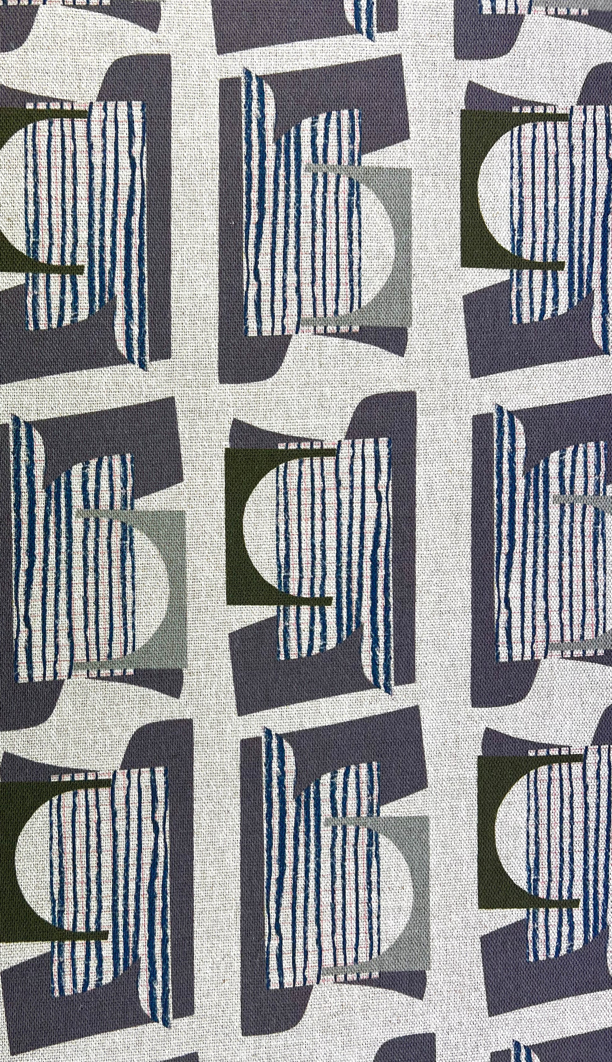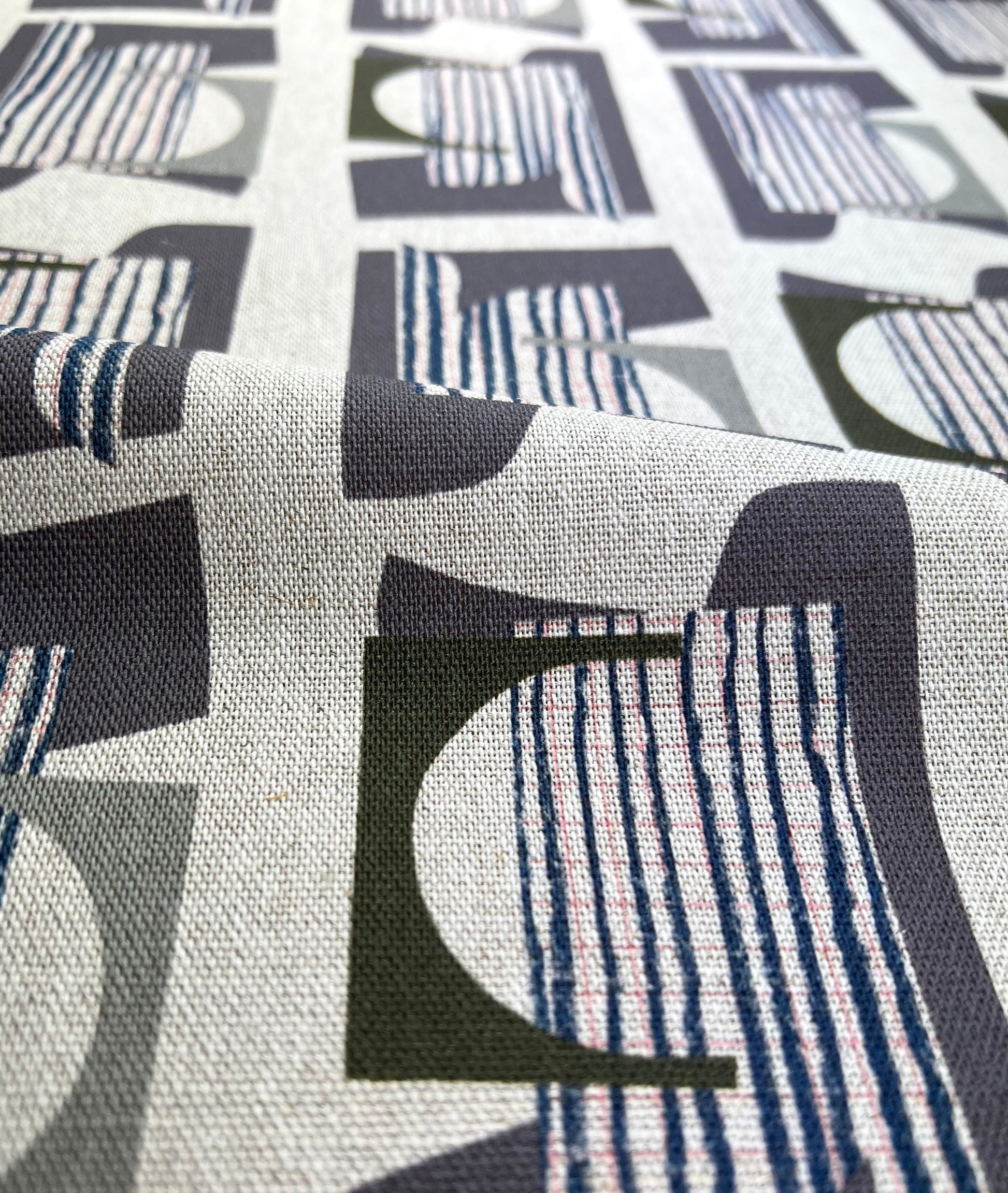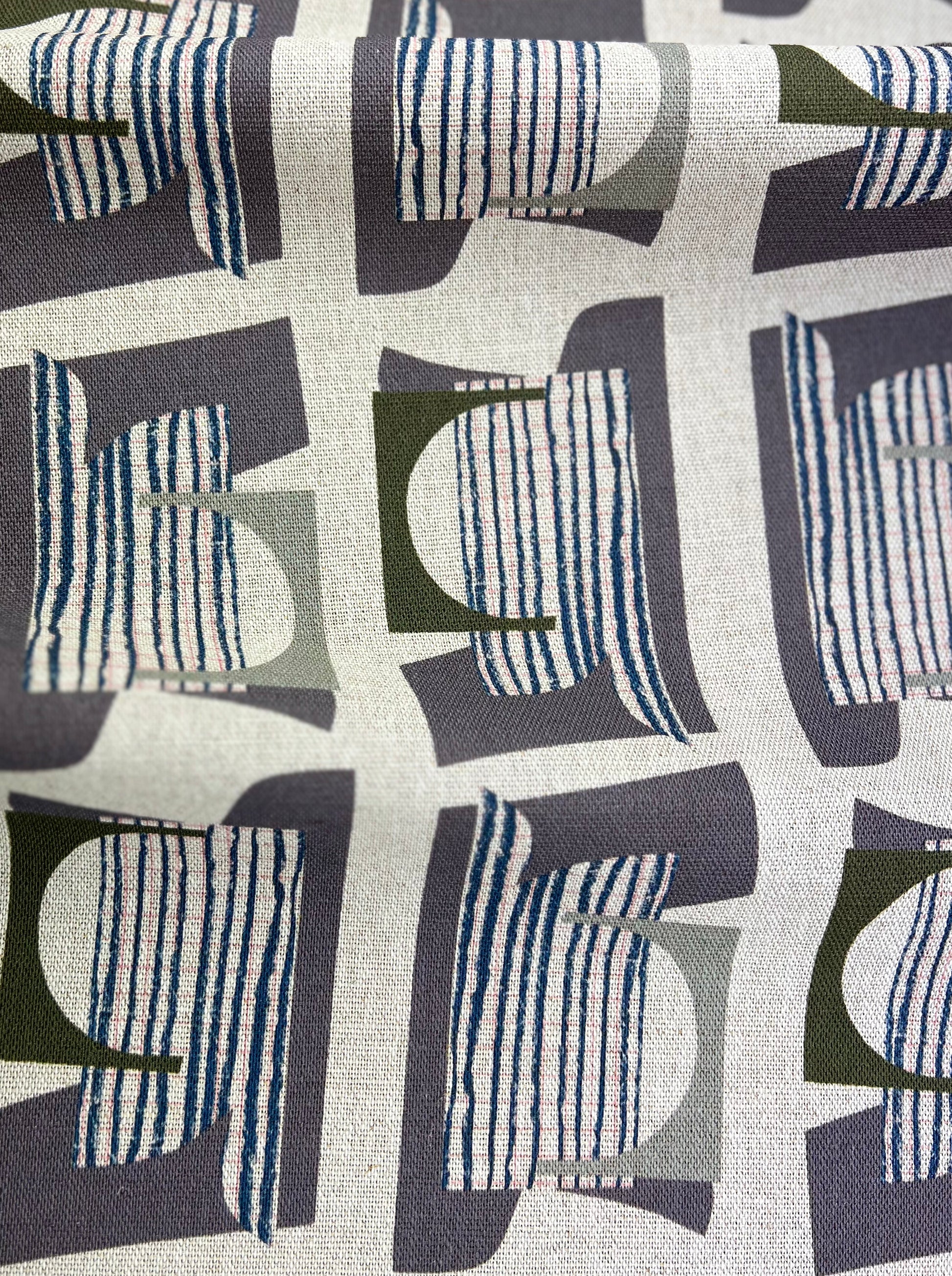 Mirren features a collage style repeat design with subtle hand-drawn details that add a soft, organic touch. This Fig colourway is printed on a beautiful oatmeal linen.