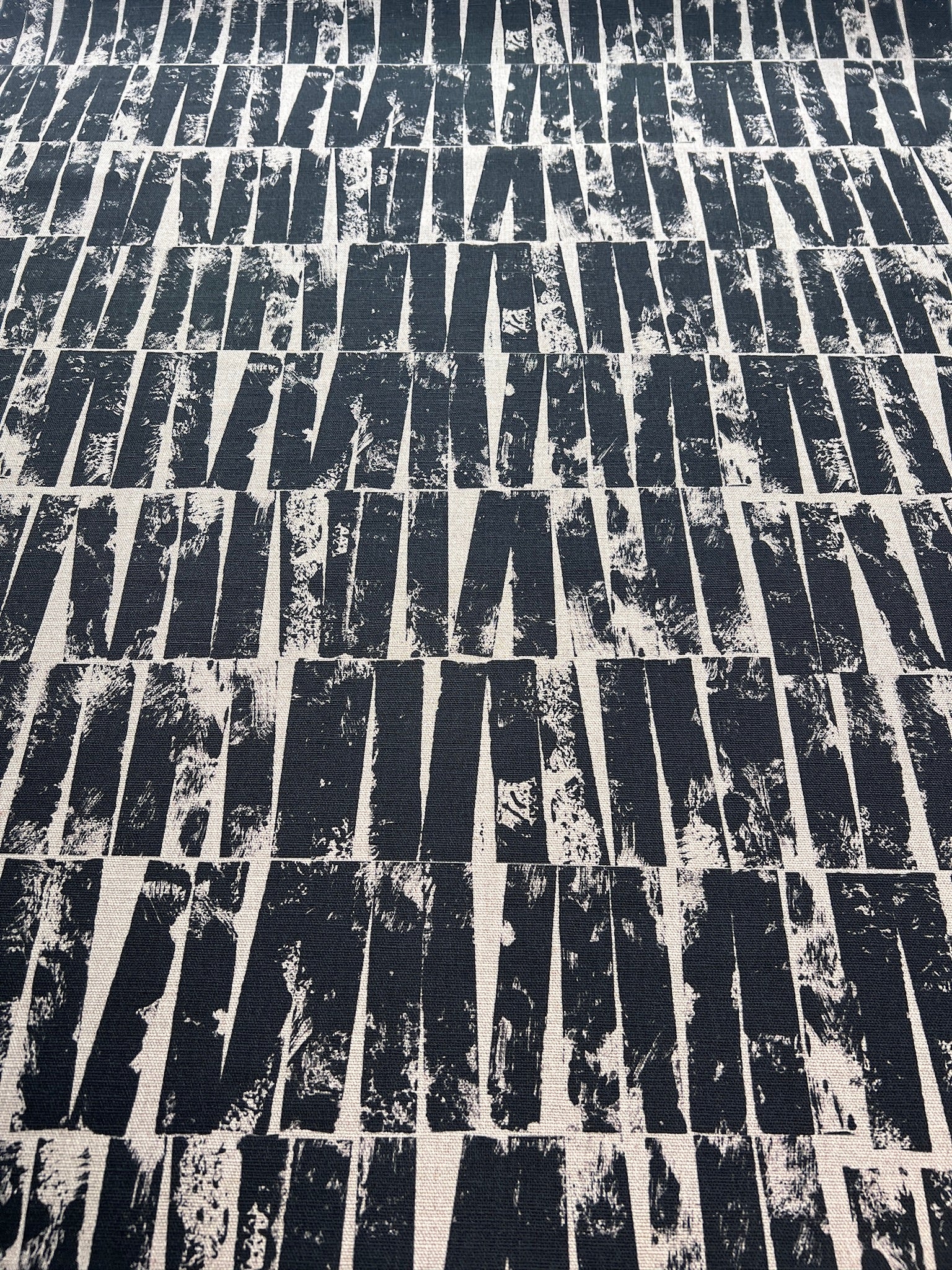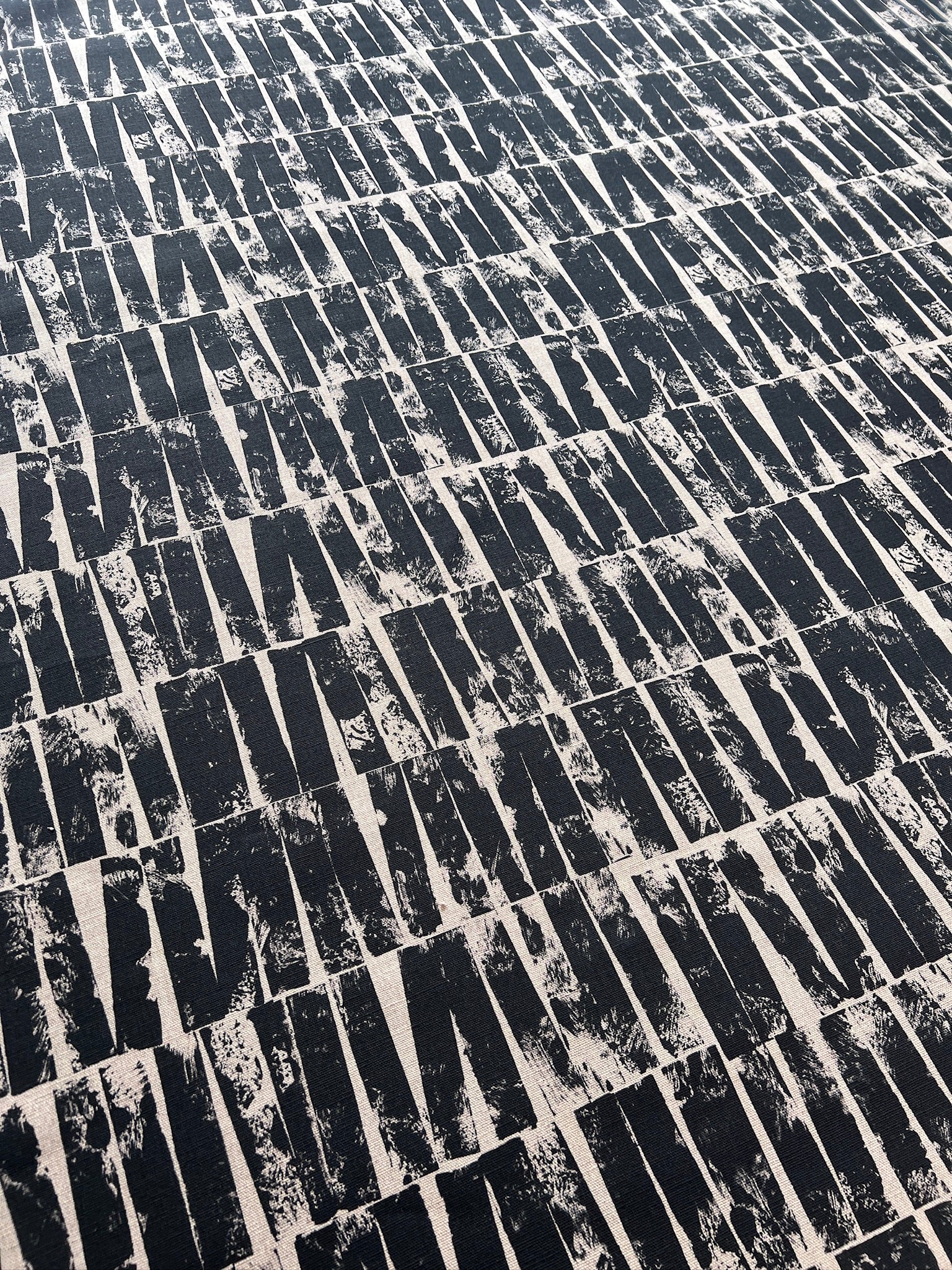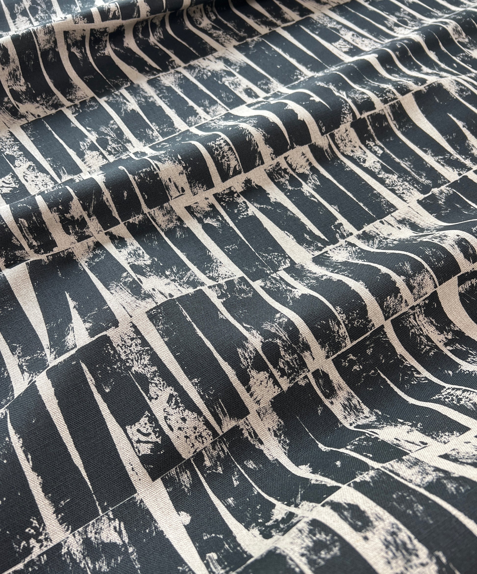Otis is a hand block-printed design, resulting in a distinctive textured pattern and an industrial-inspired style. Its bold yet understated composition draws inspiration from Brutalist forms.