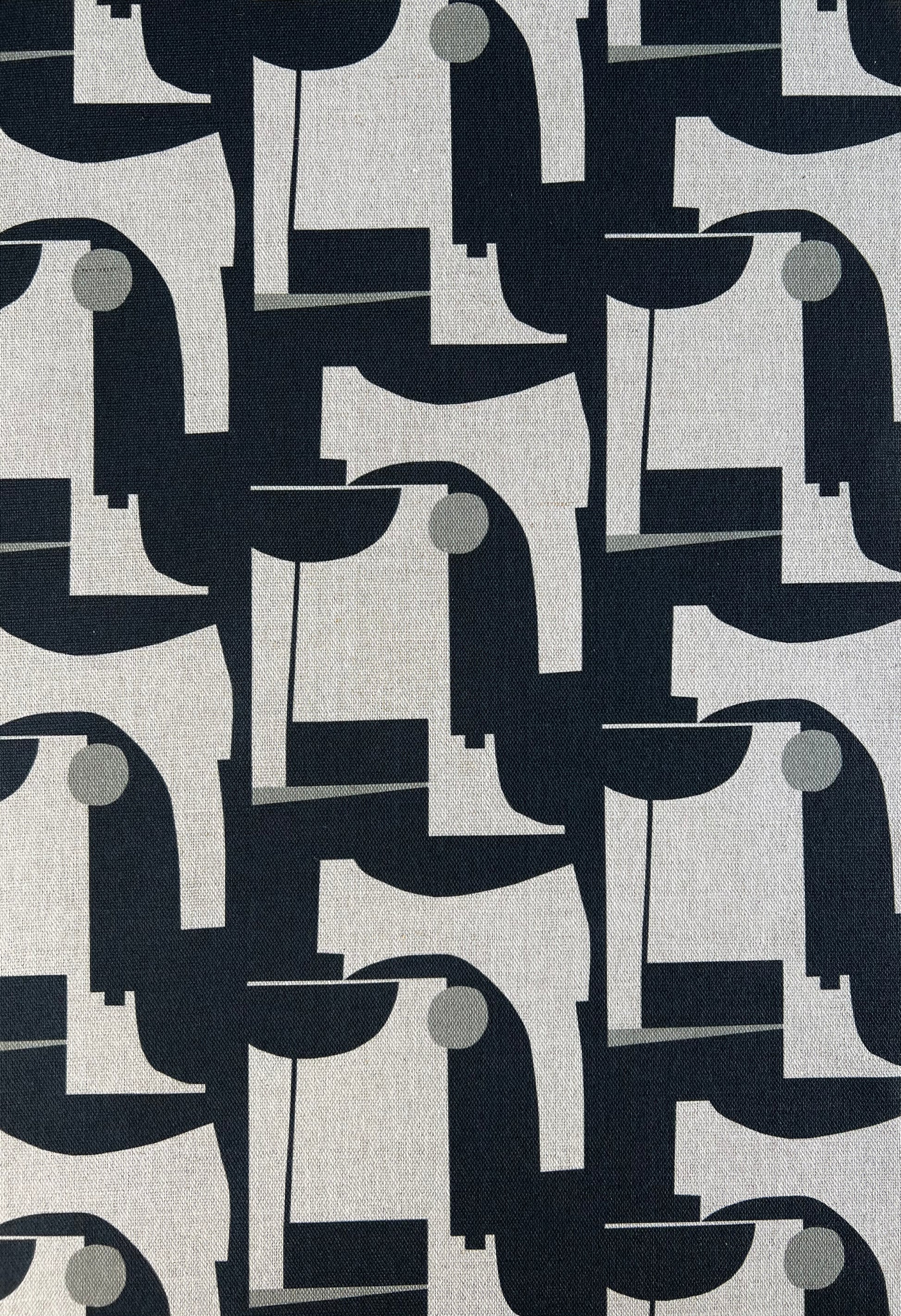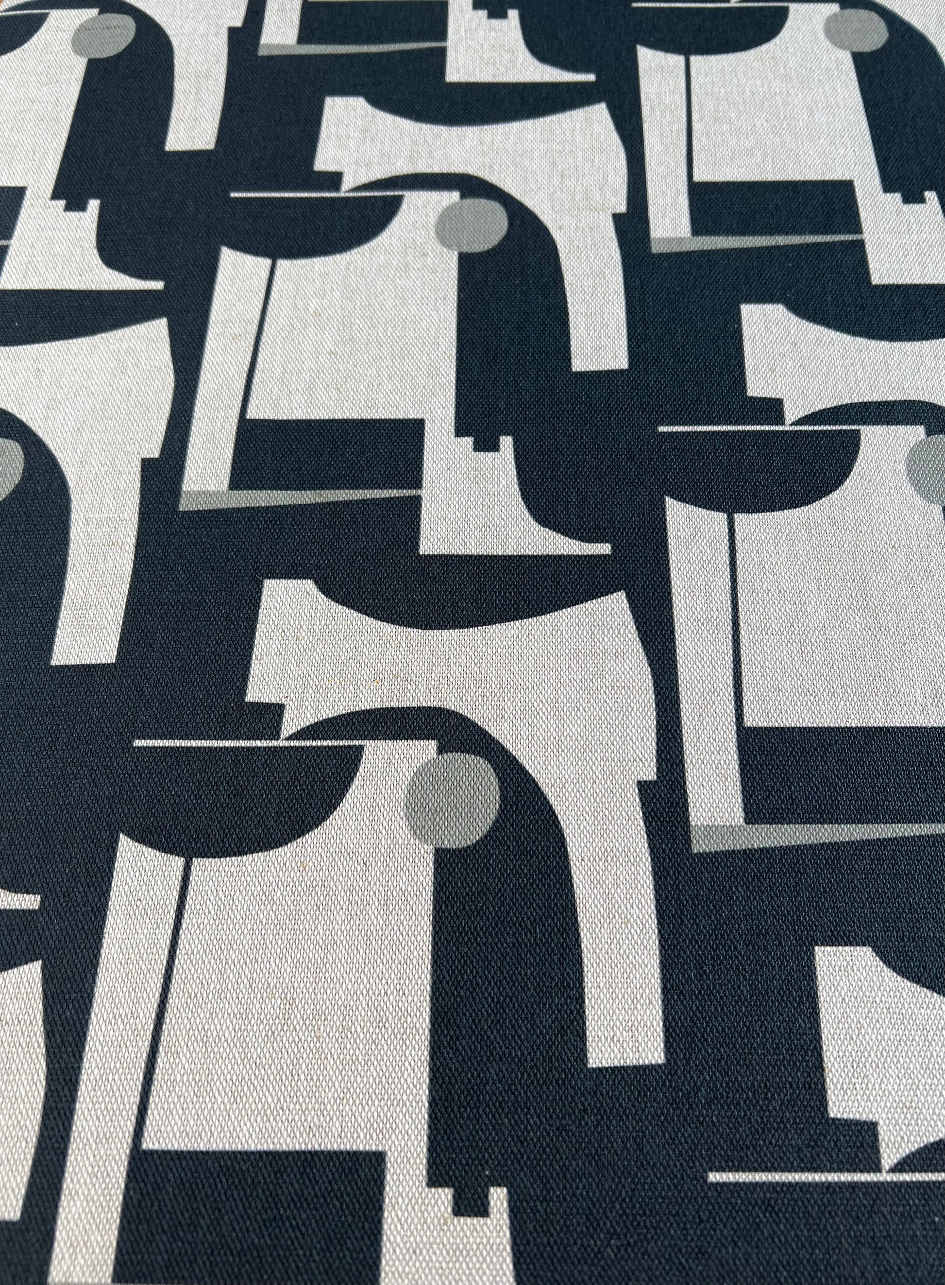 Bold, structured and modern — Thea is a striking three-colour fabric design inspired by Brutalist architecture. Its geometric repeat pattern is perfect for contemporary interiors, Thea makes a statement while remaining versatile enough for upholstery, curtains, or feature accents. This Black Charcoal and Grey colourway is available in a beautiful oatmeal linen as well as a luxurious white cotton velvet.