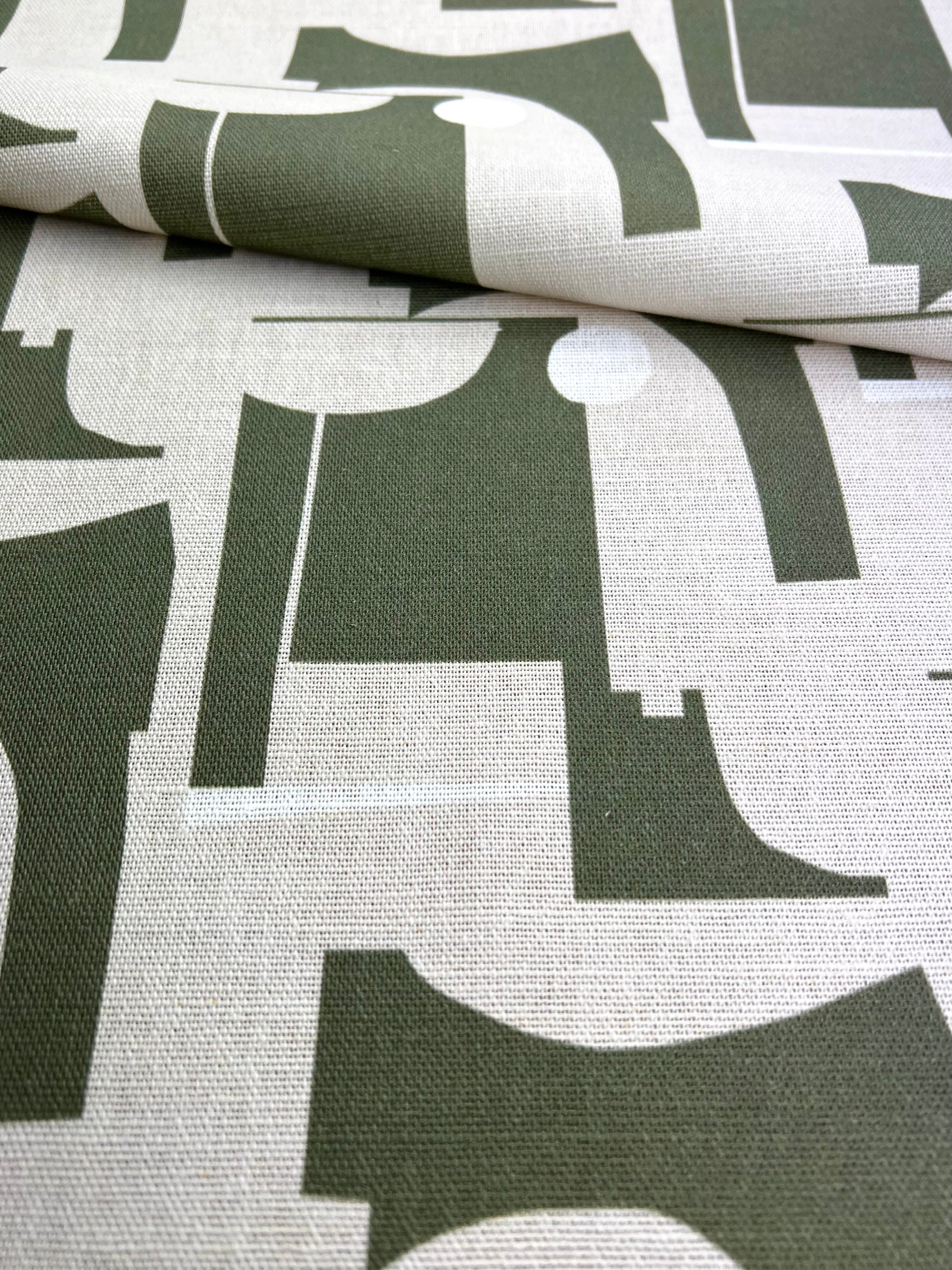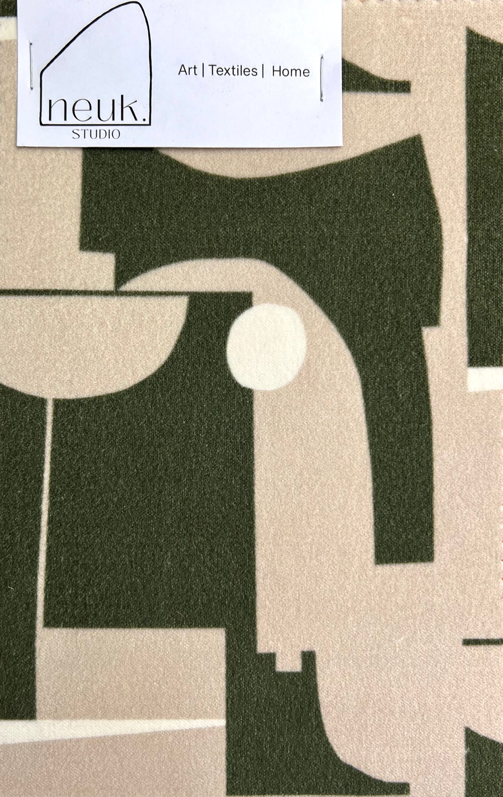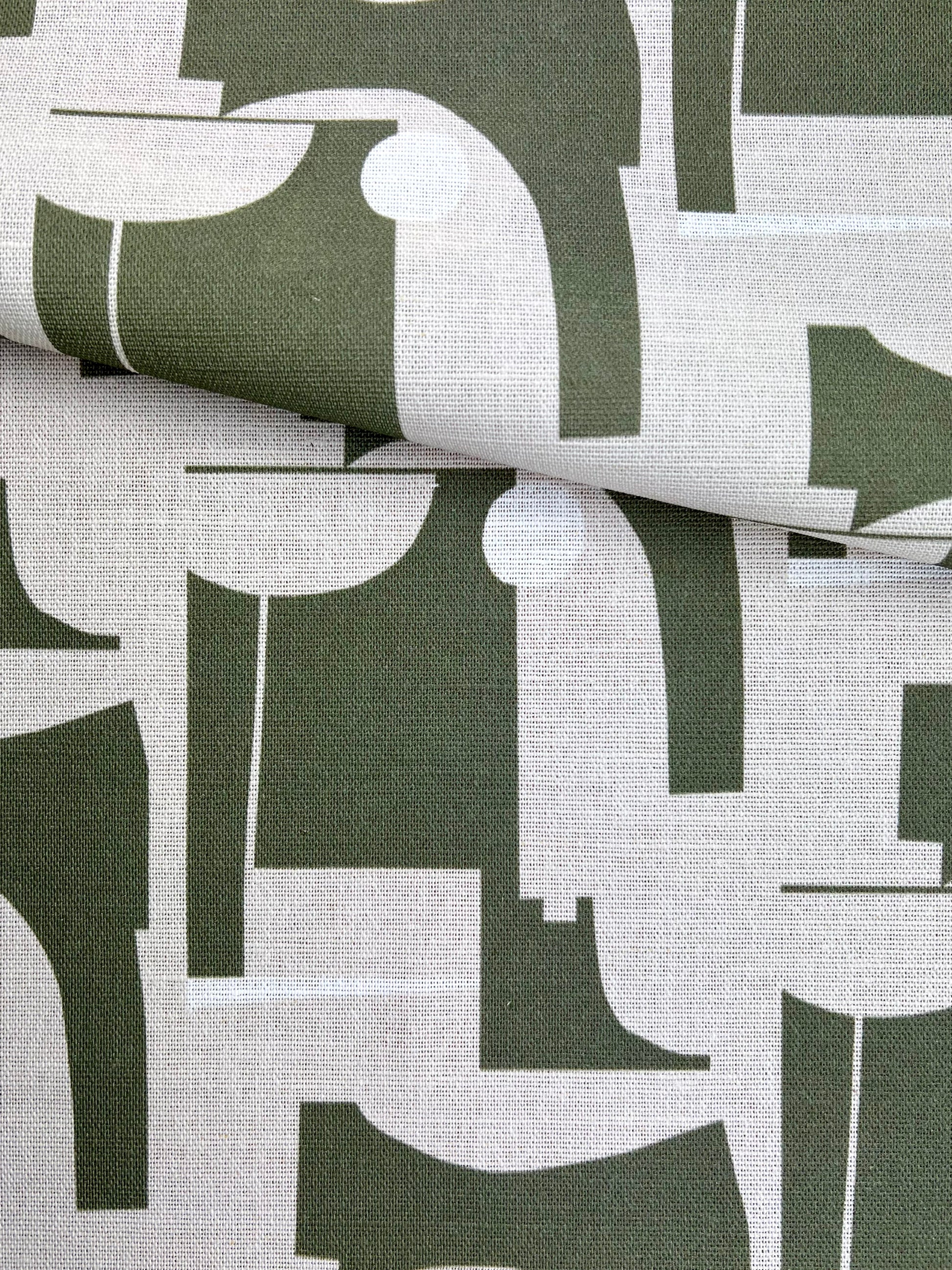 Bold, structured and modern — Thea is a striking three-colour fabric design inspired by Brutalist architecture. Its geometric repeat pattern is perfect for contemporary interiors, Thea makes a statement while remaining versatile enough for upholstery, curtains, or feature accents. This Eucalyptus and Oyster colourway is available in a beautiful white linen as well as a luxurious white cotton velvet.